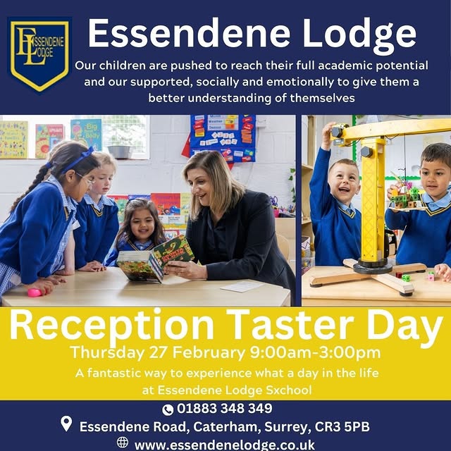 Join us for out Reception Taster day! Time: 9:00AM - 15:00PM Date: February 27th This event is open to any external pupils who may be interested in joining Essendene Lodge in reception. The children will have the opportunity to spend the day (complimentary lunch included) in our wonderful reception class where they will experience music, art and drama lessons, as well as phonics and maths lessons. Spaces are limited to head to our website now to book and avoid disappointment! #essendenelodgeschool #essendenelodge #essendeneisthebest #essendeneinspire #caterhamschools #surreyschools #ilgschools
